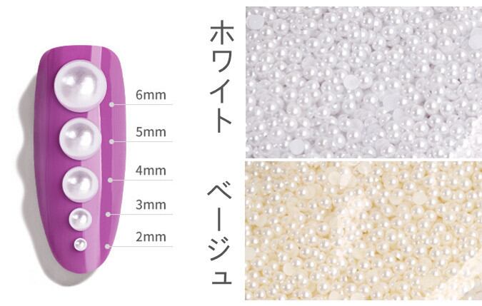 デコやネイルに最適な半円のパールストーンです!アクセサリーやデコパーツなど、色々な用途におつかいいただける。ネイル、レジン、デコなどの作品に、貼り付け、埋め込み、封入用パーツとしてお使いいただけます。